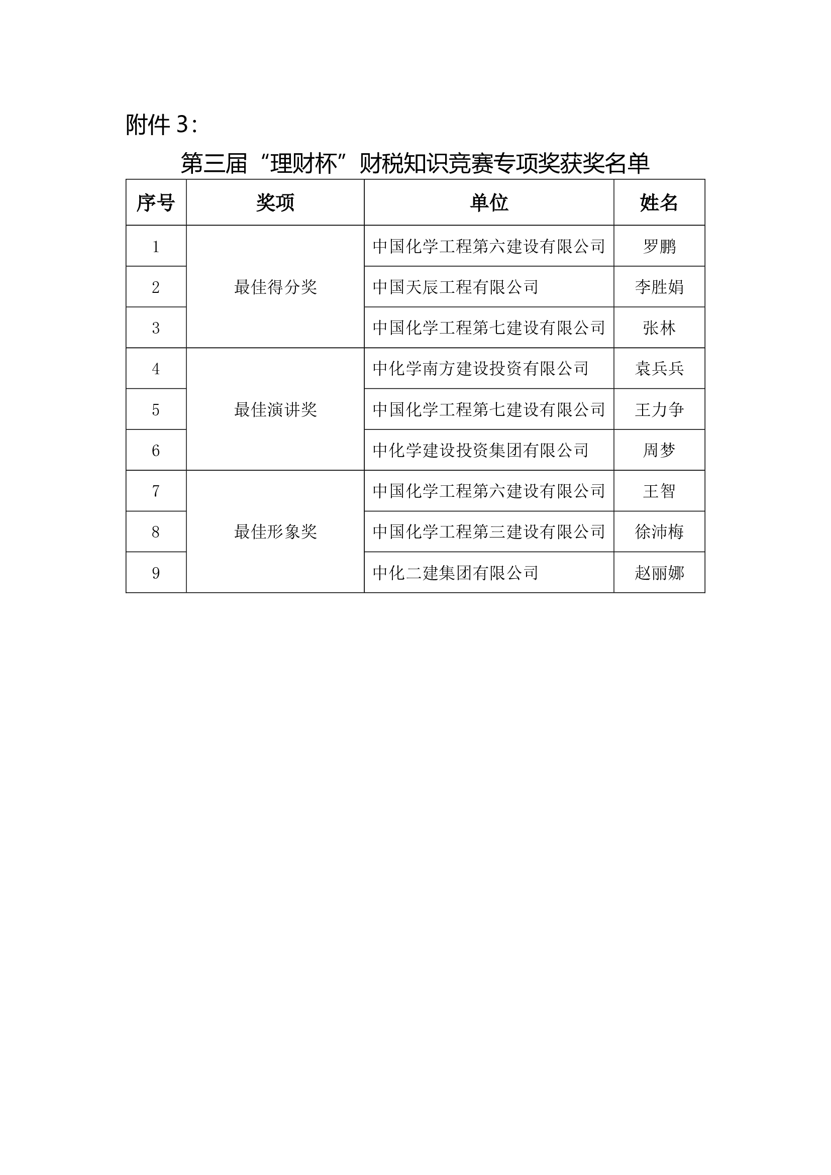 關于公布集團公司第三屆“理財杯”財稅知識競賽總決賽獲獎名單的通知(財297)