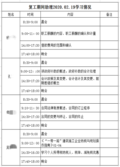 ? ? ? ?第二事業(yè)部的同事們?cè)趶?fù)工期間的學(xué)習(xí)情況得到了事業(yè)部總經(jīng)理?xiàng)羁偂⒎止芸偙O(jiān)及各部門(mén)成員的高度重視。采用分組學(xué)習(xí)的方式,每個(gè)小組均有負(fù)責(zé)人,每天對(duì)大家的學(xué)習(xí)進(jìn)度以及學(xué)習(xí)情況進(jìn)行跟進(jìn)。對(duì)每位學(xué)員的疑難點(diǎn),在群內(nèi)隨時(shí)提問(wèn),進(jìn)行針對(duì)性的答疑。在學(xué)習(xí)反饋方面,第二事業(yè)部采用日志上報(bào)的方式,進(jìn)行自我反思,回顧一天所學(xué),同時(shí)設(shè)置日志共享人,各位領(lǐng)導(dǎo)可以隨時(shí)查看,發(fā)現(xiàn)并幫助參賽者解決在學(xué)習(xí)中的問(wèn)題。